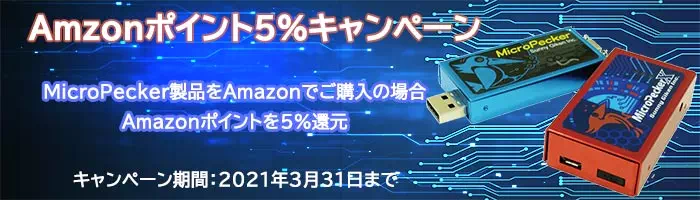 MicroPecker RAMモニタ製品のAmazon販売開始を記念して、MicroPecker製品をAmazonでご購入の場合、Amazonポイント5%を付与するキャンペーンを2021年3月31日までの期間実施します。