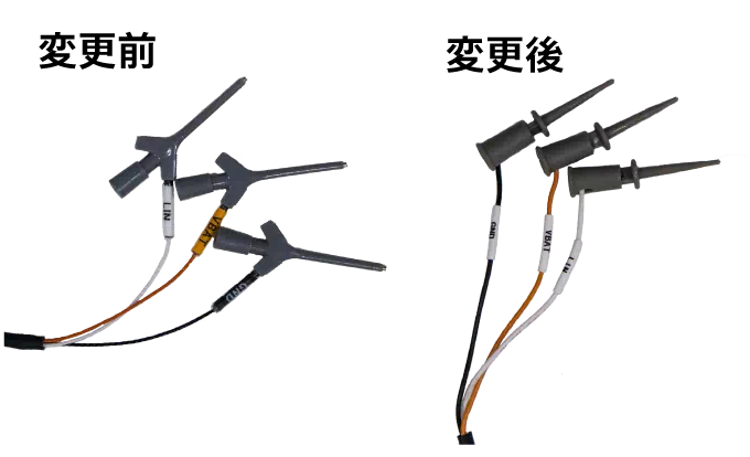 MicroPecker LINアナライザおよびLINケーブルの故障修理においては、LINケーブル交換とさせていただくため、ICクリップ変更後のLINケーブルに置き換わります。
